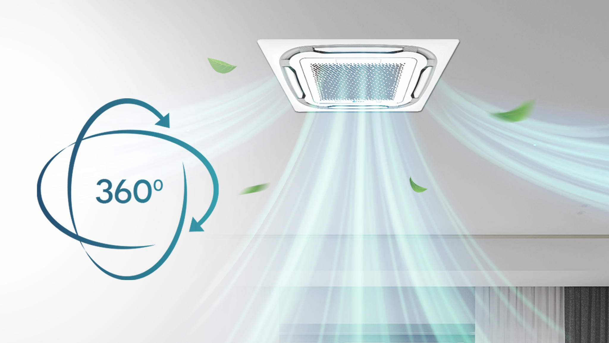 Cấp khí tươi với luồng gió được khuếch tán 360° phân bố nhiệt độ đồng đều hơn, người dùng không cảm thấy ngột ngạt và bí bách, luồng khí tươi luân chuyển tạo cảm giác tươi mới, sảng khoái và tốt cho sức khỏe.