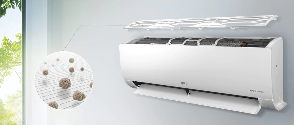Hệ thống lọc của điều hòa LG được thiết kế để bắt giữ các hạt bụi có kích thước trên 10μm cũng như các chất có khả năng gây dị ứng trong không khí như mạt bụi giúp mang đến một môi trường trong lành hơn.